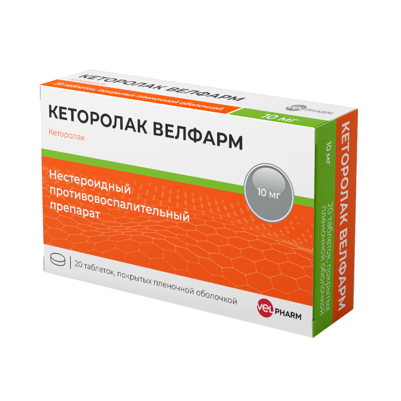 После приема внутрь кеторолак хорошо всасывается в ЖКТ, Cmax в плазме крови (0,7–1,1 мкг/мл) достигается через 40 мин после приема натощак дозы 10 мг. Богатая жирами пища снижает Cmax кеторолака в крови и задерживает ее достижение на 1 ч. С белками плазмы крови связывается 99% препарата, при гипоальбуминемии количество свободного вещества в крови увеличивается. Биодоступность — 80–100%. Время достижения Css (0,39–0,79 мкг/мл) при пероральном приеме 10 мг кеторолака 4 раза в сутки (доза выше субтерапевтической) составляет 24 ч. Vd — 0,15–0,33 л/кг. У пациентов с почечной недостаточностью Vd кеторолака может увеличиваться в 2 раза, а Vd его R-энантиомера на 20%.