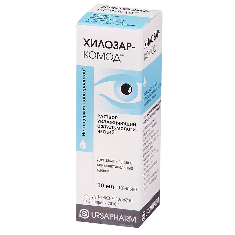 Инструкция по применению Хилозар-Комод 1 мг+20 мг/ мл раствор офтальмологический увлажняющий 10 мл