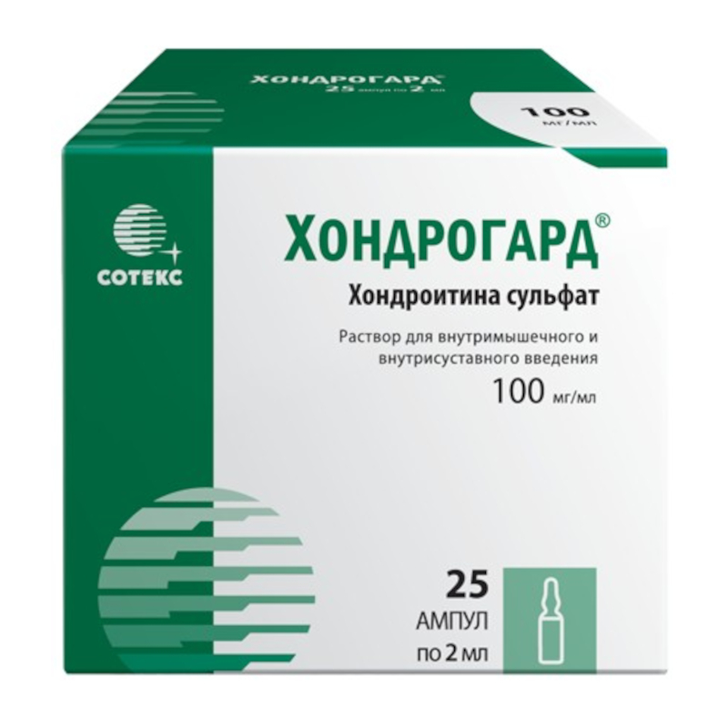 Хондрогард 100 мг/мл раствор для внутримышечного и внутрисуставного введения 2 мл 25 шт