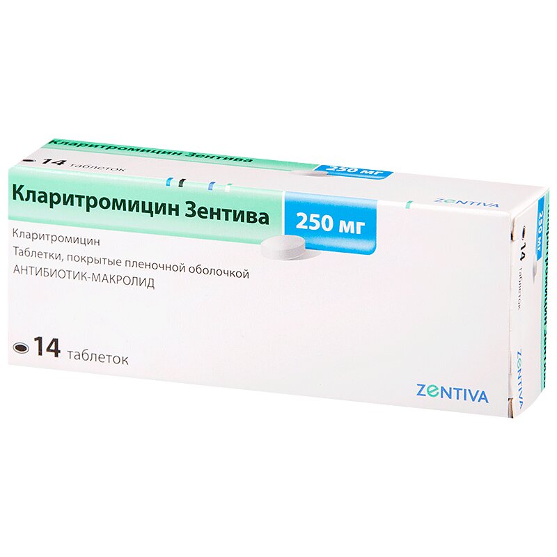 Инструкция по применению Кларитромицин Зентива таблетки 250 мг 14 шт