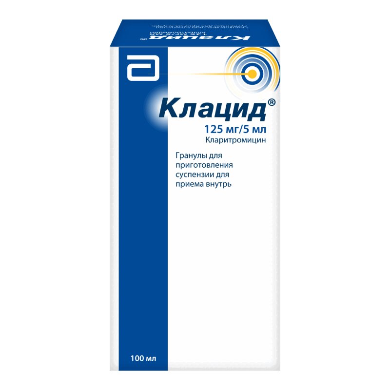 Инструкция по применению Клацид 250 мг/5 мл гранулы для приготовления суспензии для приема внутрь 70 мл