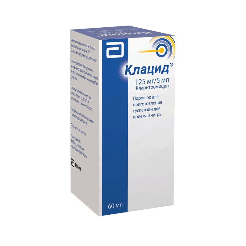 Инструкция по применению Клацид пор для пригот.суспензии 125 мг/5 мл 60 мл. уп. 1 шт