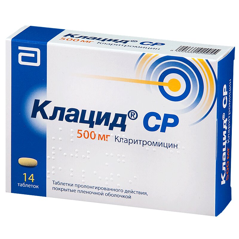 Клацид СР таблетки пролонгированного действия, покрытые пленочной оболочкой 500 мг 14 шт