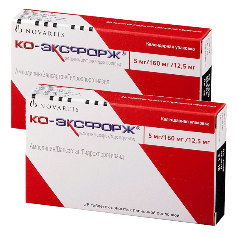 Инструкция по применению Набор 2Х Ко-Эксфорж 5 мг+160 мг+12,5 мг таблетки 28 шт