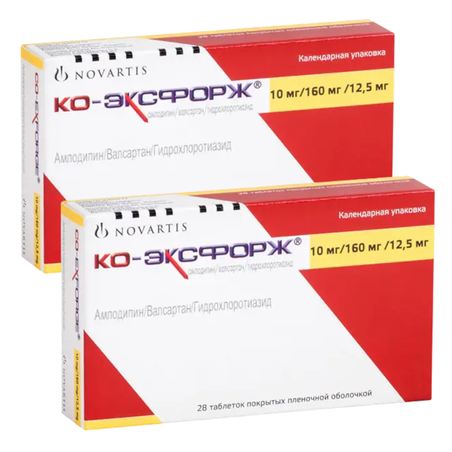 Инструкция по применению Набор 2Х Ко-Эксфорж 10 мг+160 мг+12,5 мг таблетки 28 шт