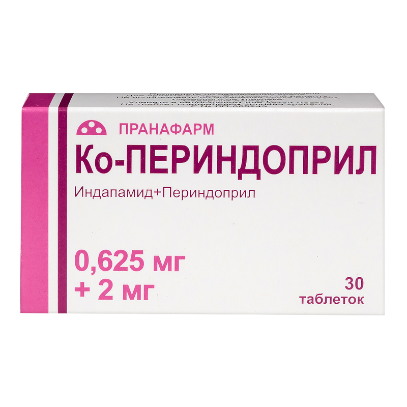 Ко-Периндоприл 0,625 мг+2 мг таблетки покрытые пленочной оболочкой 30 шт