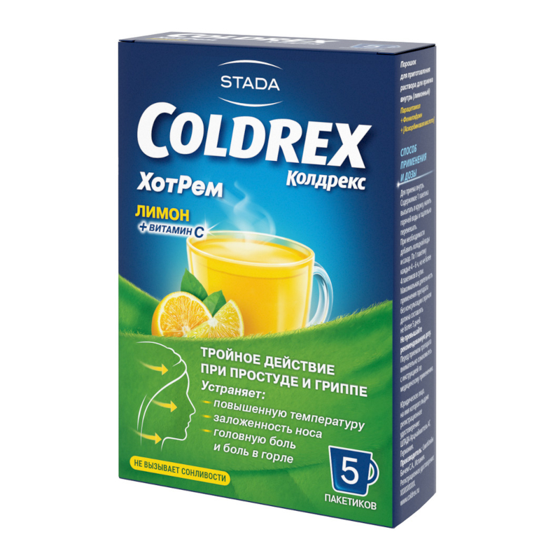 Инструкция по применению Колдрекс ХотРем порошок для приготовления раствора Лимон 5 шт