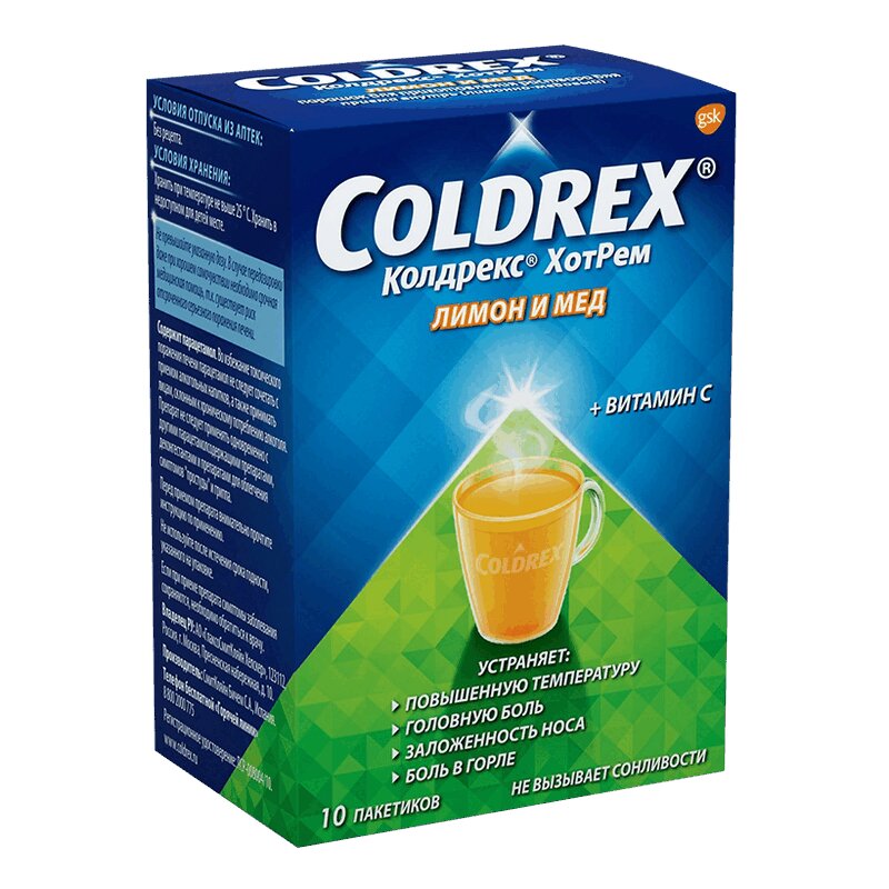 Инструкция по применению Колдрекс ХотРем порошок для приготовления раствора Мед-Лимон 10 шт