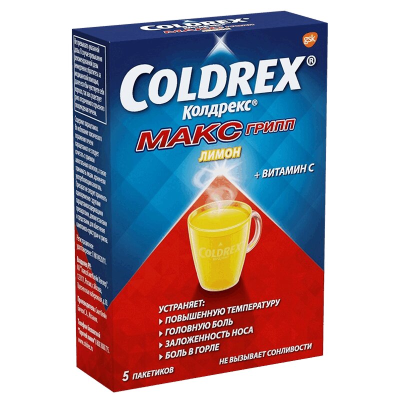 Инструкция по применению Колдрекс МаксГрипп порошок для приготовления раствора Лимон 5 шт