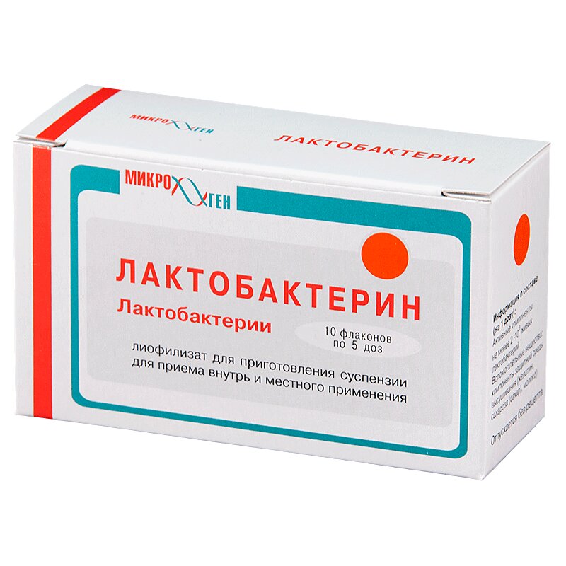 Лактобактерин лиофилизат для приготовления суспензии для приема внутрь флакон 5доз 10 шт