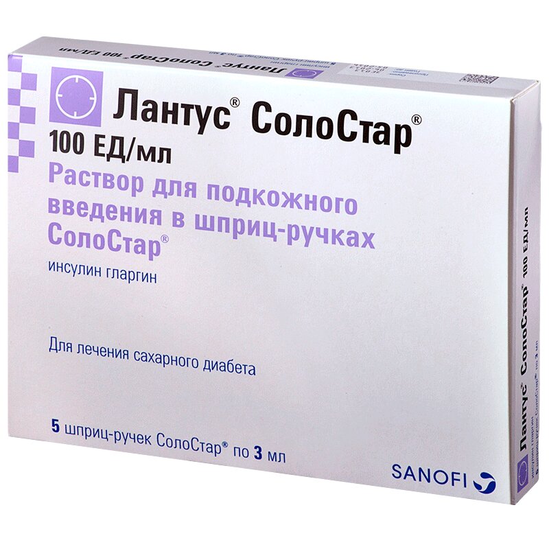Лантус СолоСтар раствор для подкожного введения 100ЕД/ мл шприц-ручка 3 мл 5 шт