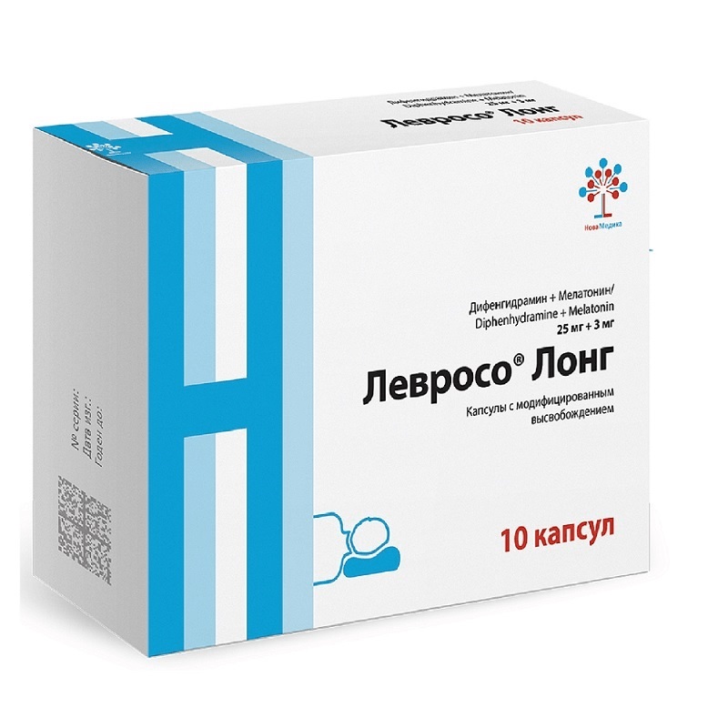 Левросо® Лонг, капсулы 25 мг+3 мг, назначают взрослым по 1 капсуле 1 раз/сут за 30-40 минут до сна.