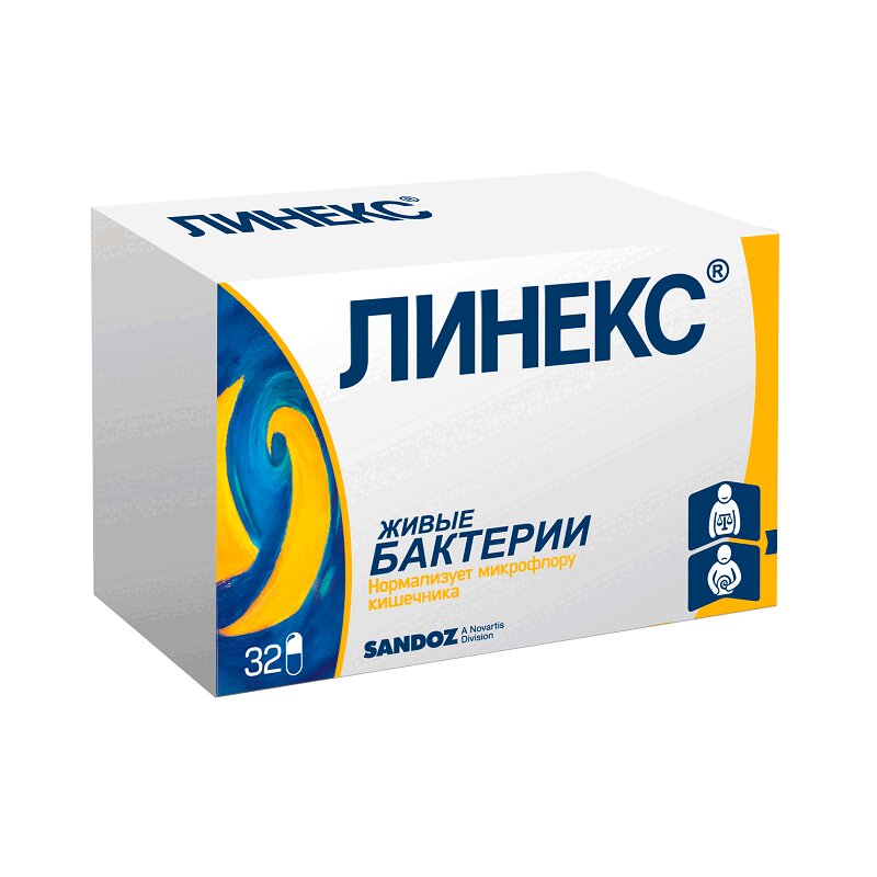 Линекс® нормализует микрофлору кишечника. Одна капсула препарата Линекс® содержит не менее 1.2×107 живых лиофилизированных молочнокислых бактерий: Lactobacillus acidophilus, Bifidobacterium infantis, Enterococcus faecium. Живые молочнокислые бактерии являются нормальной составляющей естественной микрофлоры кишечника и содержатся уже в пищеварительном тракте новорожденного ребенка.