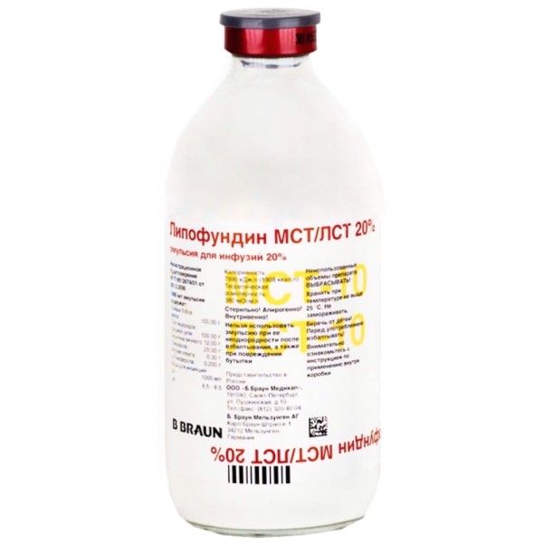 Симптомы: синдром жировой перегрузки может быть результатом длительного введения жировой эмульсии у пациентов с нарушением выведения триглицеридов. Передозировка жировой эмульсии, содержащей триглицериды средней цепи, особенно без сопутствующего введения растворов углеводов, может привести к метаболическому ацидозу.