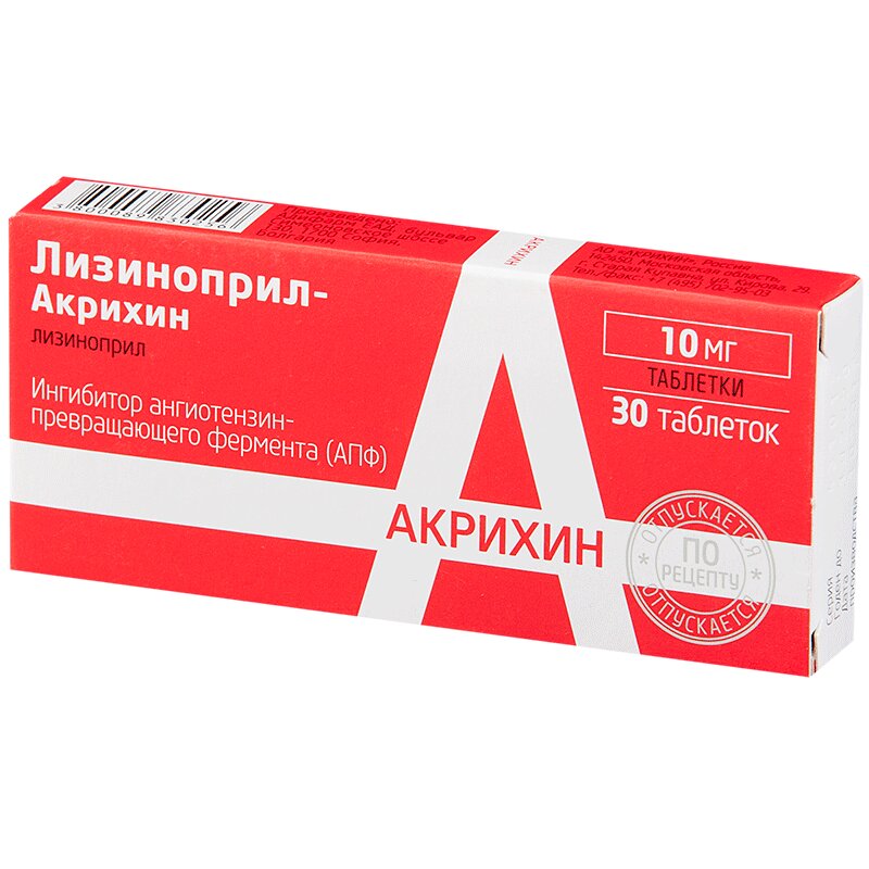 Лизиноприл-Акрихин 10 мг таблетки 30 шт