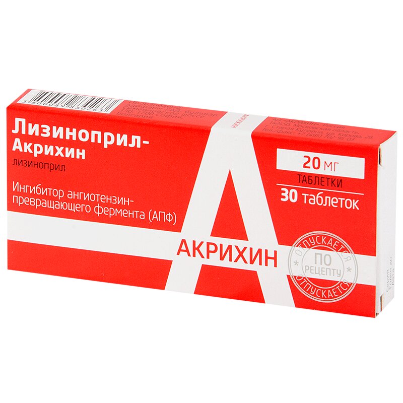Лизиноприл-Акрихин 20 мг таблетки 30 шт