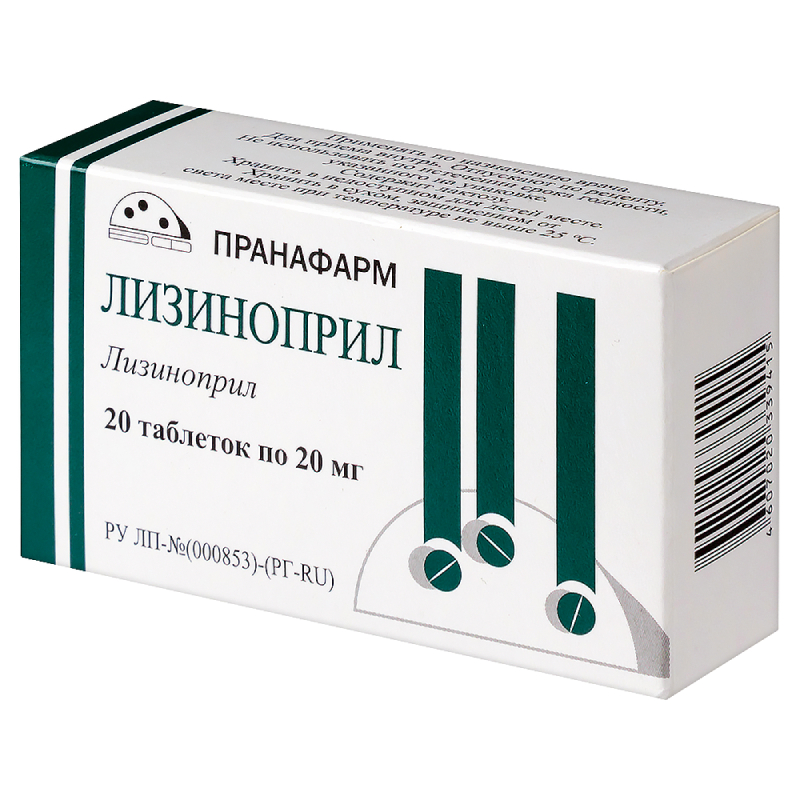 Инструкция по применению Лизиноприл 20 мг таблетки 20 шт