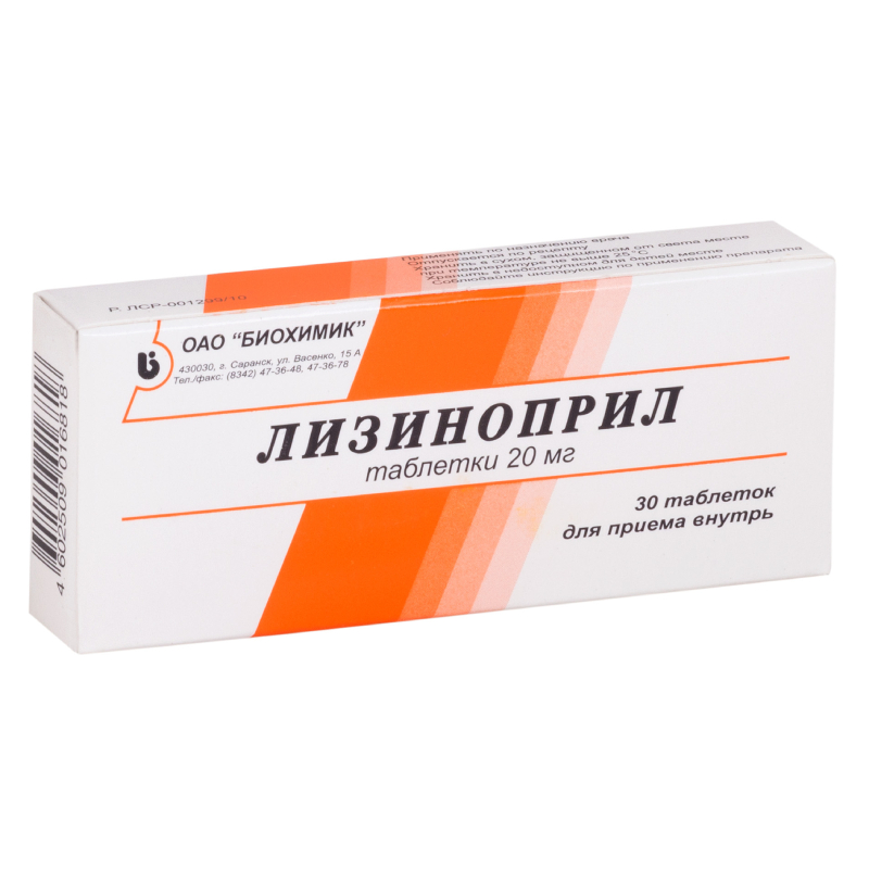 Лизиноприл 20 мг таблетки 30 шт Биохимик