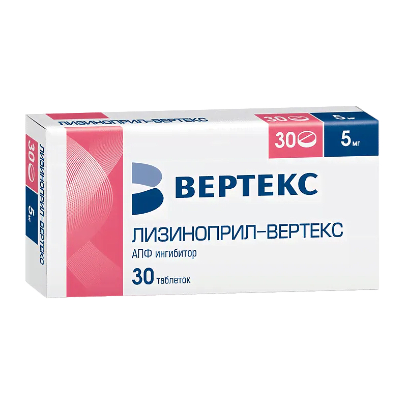 Лизиноприл-ВЕРТЕКС 5 мг таблетки 30 шт