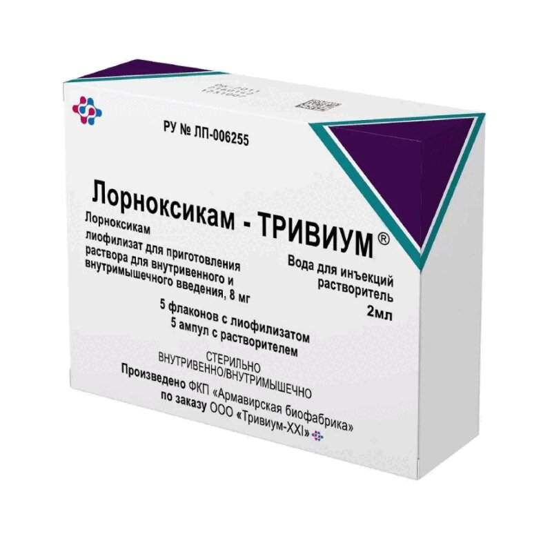 Лорноксикам-ТРИВИУМ 8 мг лиофилизат для приготовления раствора для внутривенного и внутримышечного введения 5 шт + растворитель 5 шт