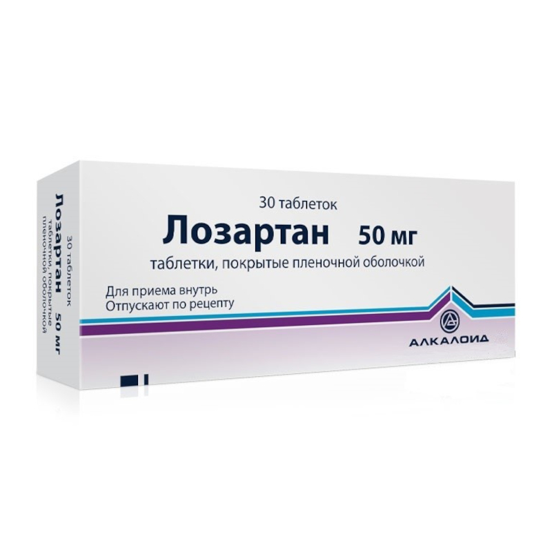 Лозартан 50 мг таблетки покрытые пленочной оболочкой 30 шт Алкалоид