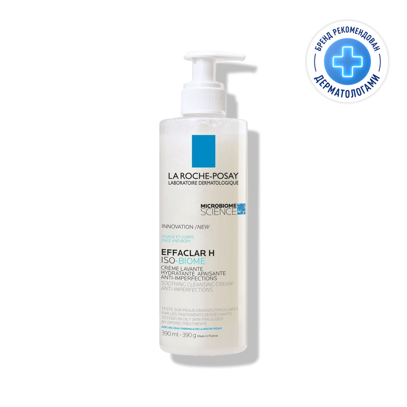 ИННОВАЦИЯ*: Увлажняет кожу и борется с несовершенствами одновременно. Формула обогащена Аква Позе Филиформис - запатентованной фракцией пребиотика, выращенного в воде из источника La Roche-Posay. ЭКСПЕРТИЗА: Жирная проблемная кожа отличается не только повышенной активностью сальных желез, но и дисбалансом ее микробиома – в частности, увеличивается популяция бактерий P. acnes и Staphylococcus. Активный компонент Аква Позе Филиформис s в средствах La Roche-Posay помогает регулировать микробиом кожи, сохраняя на ее поверхности полезные бактерии. Кожа, склонная к появлению жирного блеска и несовершенств нуждается в увлажнении и защите не меньше, чем кожа любого другого типа. Использование средств для борьбы с акне может приводить к нарушению естественного защитного барьера кожи, ощущению сухости и дискомфорта. Успокаивающий очищающий крем-гель против несовершенств Effaclar H Iso-Biome не только бережно удаляет загрязнения с кожи, возвращая ощущение комфорта, но и борется с несовершенствами. [МАСЛО КАРИТЕ/ШИ] - увлажняет кожу [НИАЦИНАМИД] и [ТЕРМАЛЬНАЯ ВОДА LA ROCHE-POSAY] - успокаивают кожу [ЭКСТРАКТ АННАТО] - помогает бороться с несовершенствами [АКВА ПОЗЕ ФИЛИФОРМИС] - регулирует микробиом кожи ДОКАЗАННАЯ ЭФФЕКТИВНОСТЬ: -67% СУХОСТИ УЖЕ ЧЕРЕЗ 10 МИНУТ ПОСЛЕ УМЫВАНИЯ** 81% СОГЛАСИЛИСЬ, ЧТО КРЕМ-ГЕЛЬ ДАРИТ ОЩУЩЕНИЯ КОМФОРТА ПОСЛЕ УМЫВАНИЯ** ПРОТЕСТИРОВАНО НА ЖИРНОЙ ПРОБЛЕМНОЙ КОЖЕ, ОСЛАБЛЕННОЙ В РЕЗУЛЬТАТЕ ИСПОЛЬЗОВАНИЯ ПЕРЕСУШИВАЮЩИХ СРЕДСТВ ДЛЯ БОРЬБЫ С АКНЕ. РЕЗУЛЬТАТ: Кожа бережно очищена, мгновенно возникает ощущение комфорта. Кожа заметно более гладкая (+48%**). Укрепляет и восстанавливает защитный барьер кожи. Заметно сокращает несовершенства (согласились 62% опрошенных***), закупоренные поры (согласились 73% опрошенных***) спустя месяц после использования.