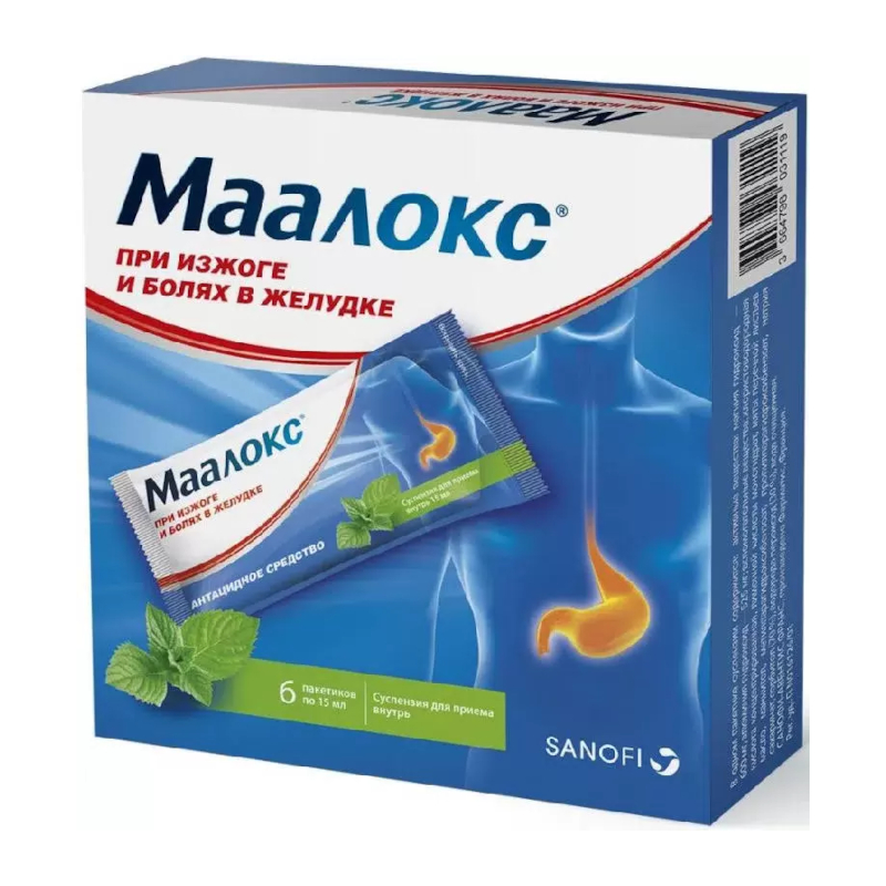 Инструкция по применению Маалокс суспензия для приема внутрь Мята 15 мл 6 шт