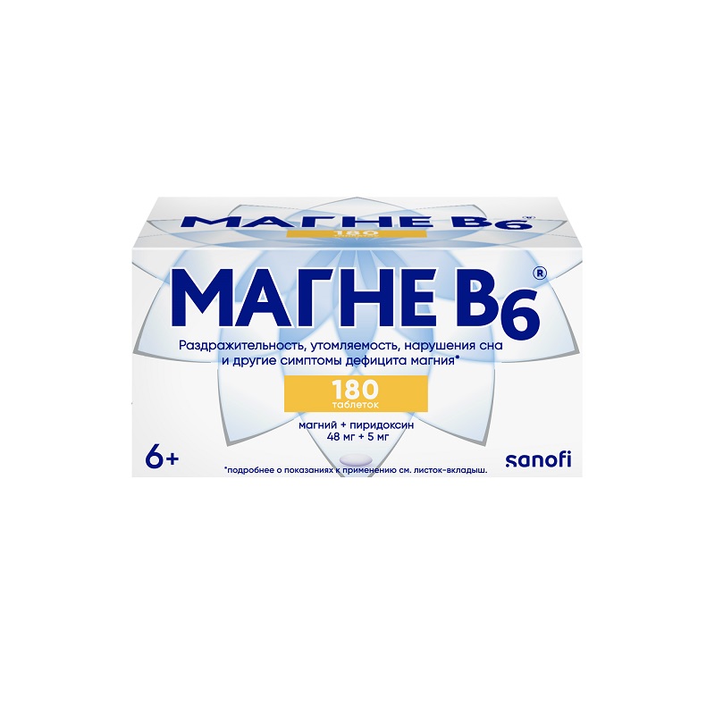 Магне В6 48 мг+5 мг таблетки покрытые оболочкой 180 шт