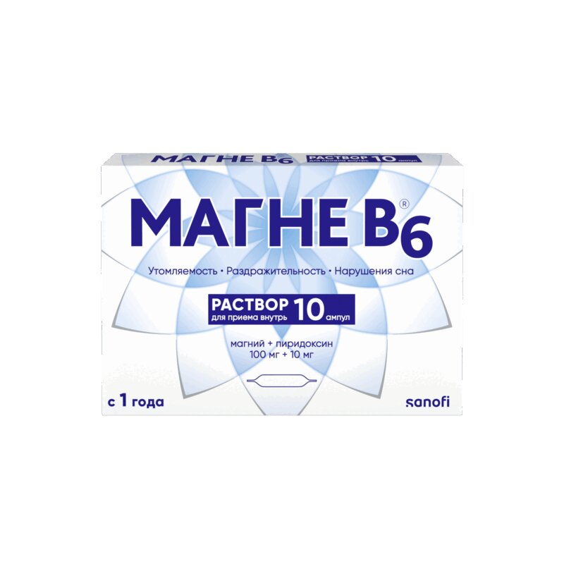 Инструкция по применению Магнелис B6 Аква 100 мг+10 мг раствор для приема внутрь 10 мл 15 шт