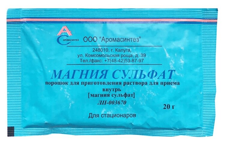 Инструкция по применению Магния сульфат порошок для приготовления раствора для приема внутрь 20 г