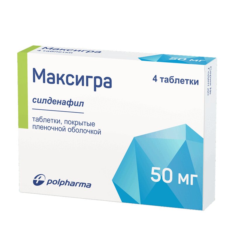 Максигра таблетки покрытые пленочной оболочкой блистер 50 мг 4 шт