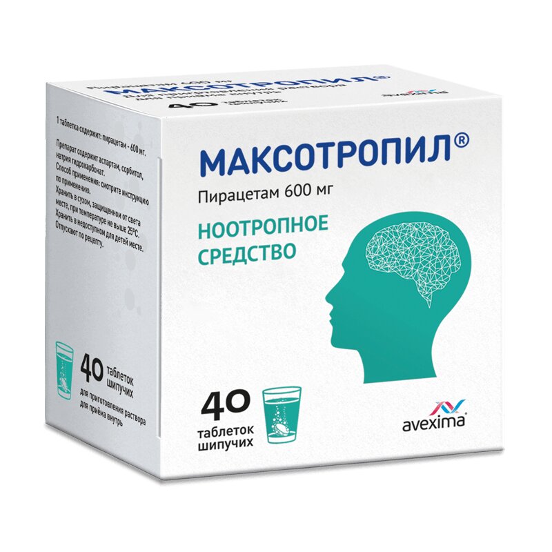 Максотропил 600 мг таблетки шипучие для приготовления раствора для приема внутрь 40 шт