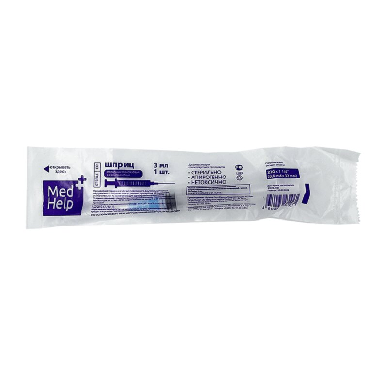 Информация о товаре MedHelp Шприц трехкомпонентный для подкожного внутримышечного и внутривенного введения 10 мл 5 шт