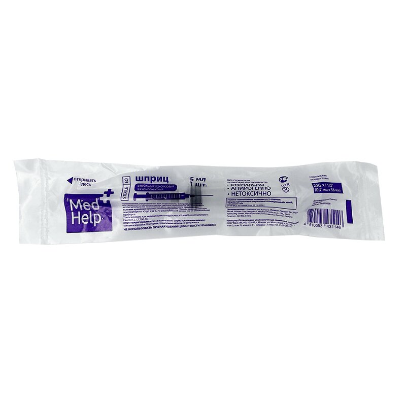 MedHelp Шприц трехкомпонентный для подкожного внутримышечного и внутривенного введения 10 мл 5 шт