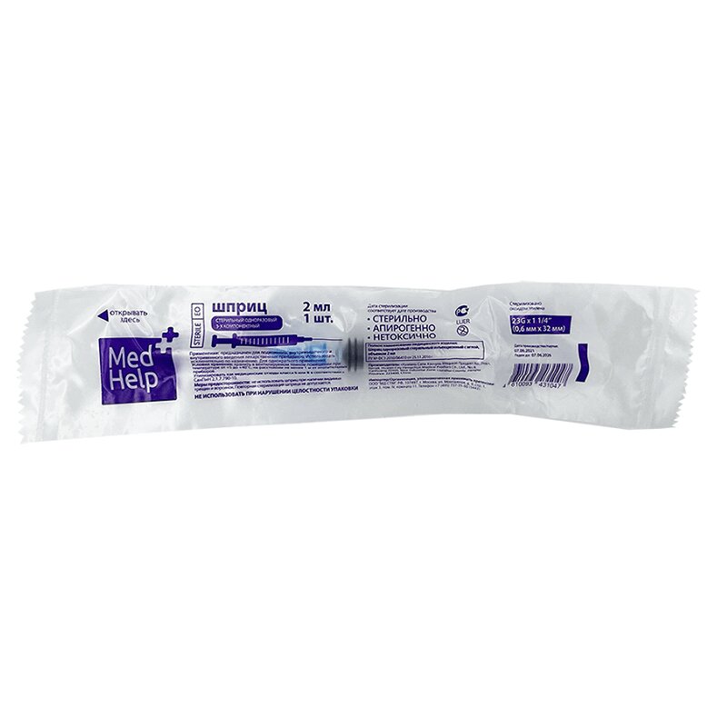 Информация о товаре MedHelp Шприц трехкомпонентный для внутримышечного введения 5 мл 10 шт