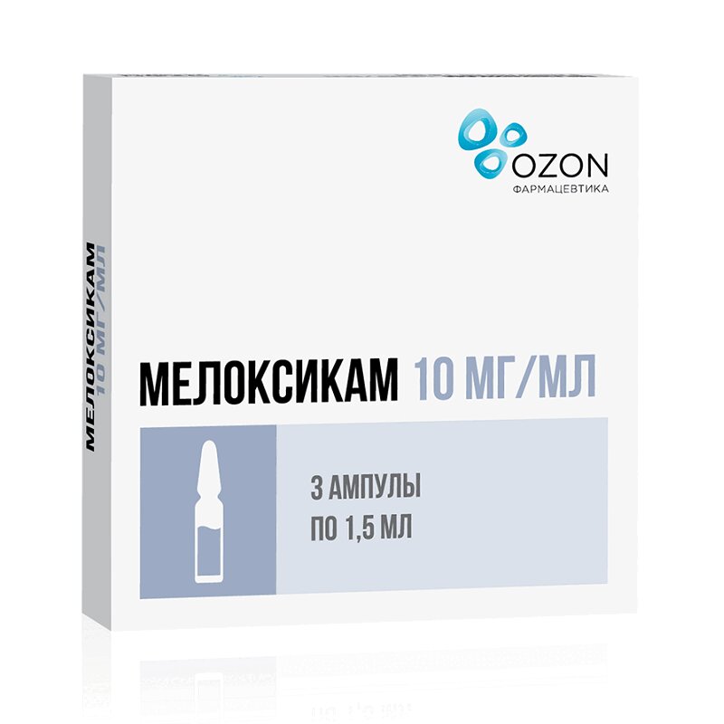 Мелоксикам 10 мг/мл раствор для внутримышечного введения 1,5 мл 3 шт Озон