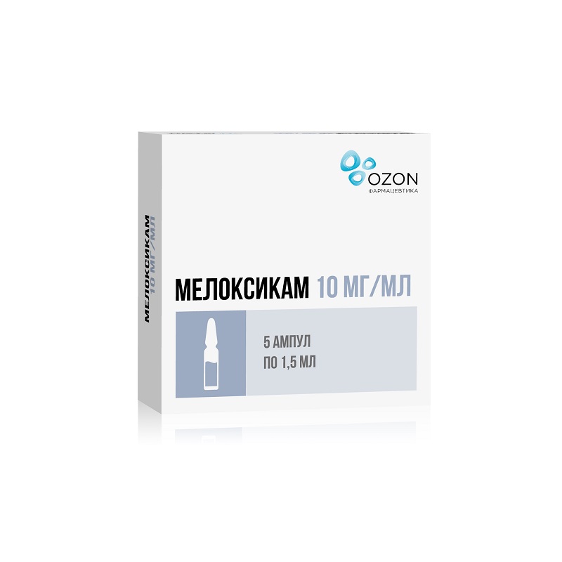 Мелоксикам 10 мг/мл раствор для внутримышечного введения 1,5 мл 5 шт Озон
