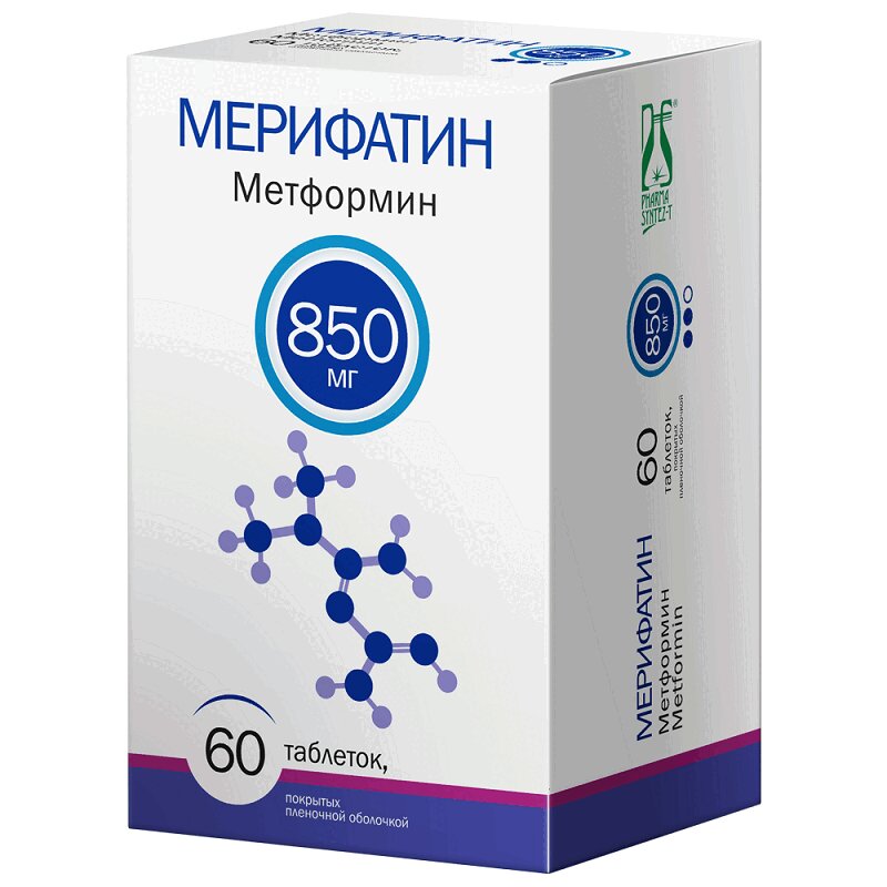 Мерифатин таблетки покрытые пленочной оболочкой упаковка контурная ячейковая 850 мг 60 шт