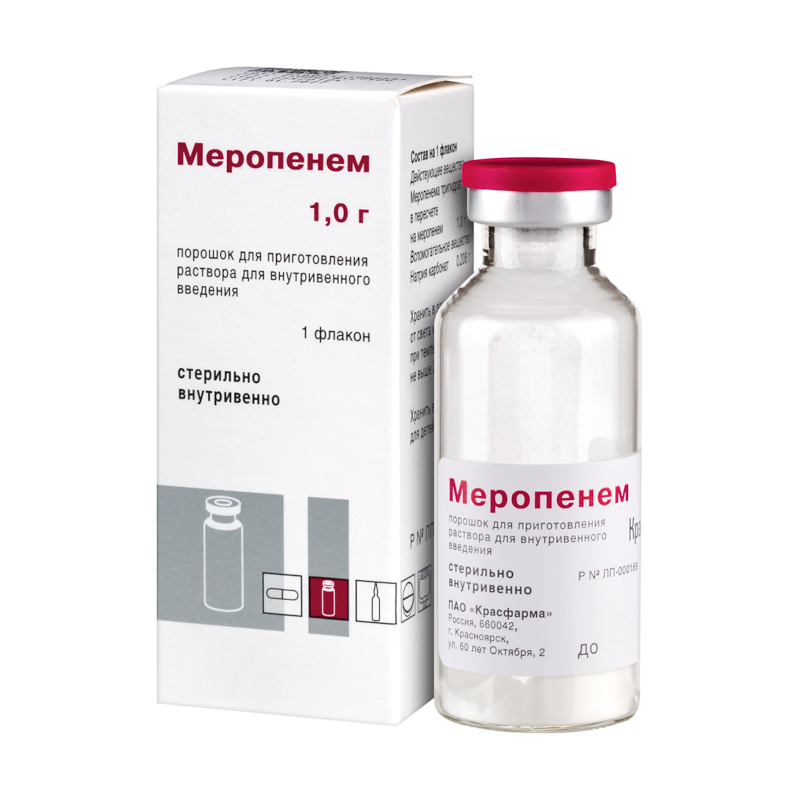 Меропенем 1 г порошок для приготовления раствора для внутривенного введения 1 шт