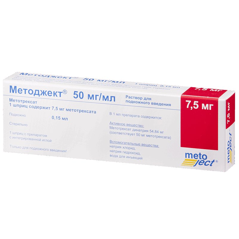 Инструкция по применению Методжект 50 мг/мл 7,5 мг/0,15 мл раствор для подкожного введения шприц 0,15 мл