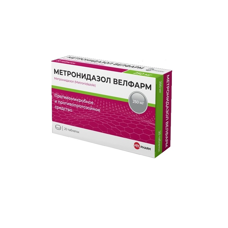 Около 30-60% метронидазола метаболизируется путем гидроксилирования, окисления и глюкуронирования. Основной метаболит (2-оксиметронидазол) также оказывает противопротозойное и противомикробное действие.