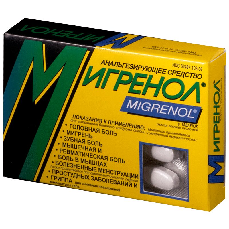 Применяется для устранения болевого синдрома слабой и умеренной выраженности: головная боль, мигрень, зубная боль, мышечная и ревматическая боль, боль в мышцах, болезненные менструации. Мигренол также применяется для симптоматического лечения простудных заболеваний и гриппа для снижения повышенной температуры тела.