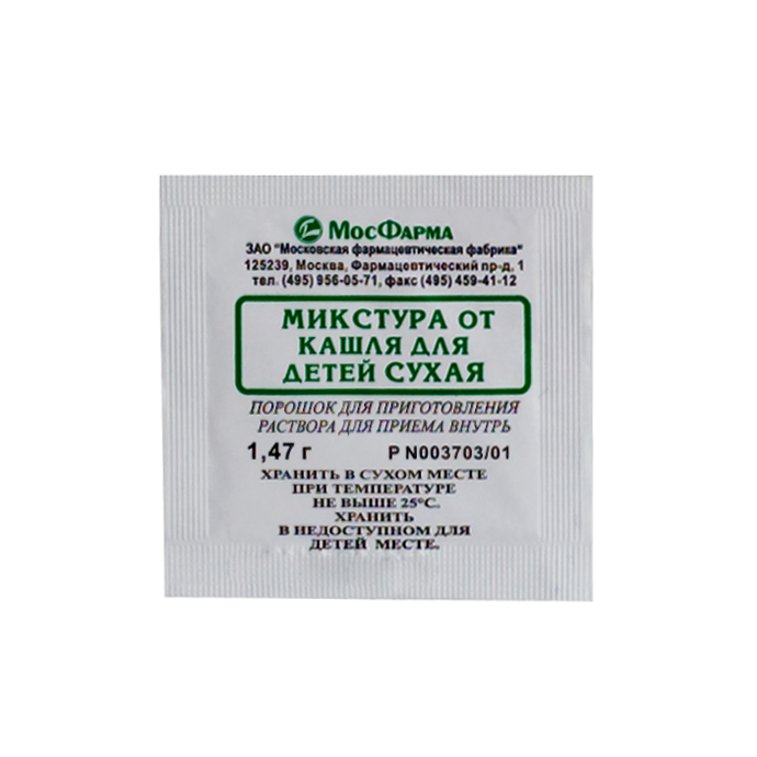 Инструкция по применению Микстура от кашля для детей сухая пор д/оралн р-ра 1.47 г пак N1
