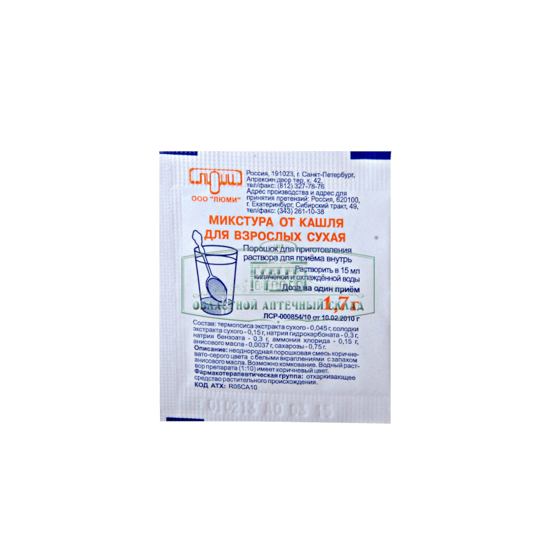 Микстура от кашля для взрослых сухая порошок для приготовления раствора для приема внутрь 1.7 г 1 шт Люми