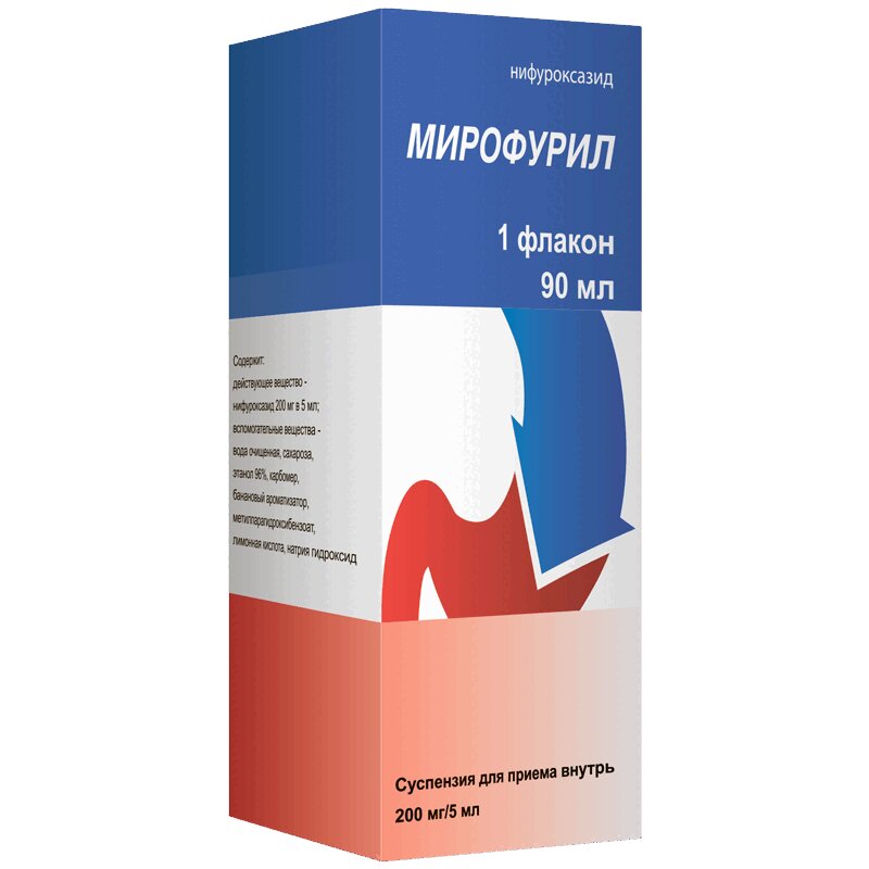 Инструкция по применению Мирофурил суспензия для приема внутрь 200 мг/5 мл 90 мл