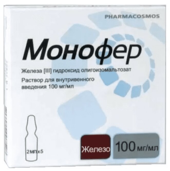 Монофер раствор для внутривенного введения ампула 100 мг/ мл амп.2 мл 5 шт