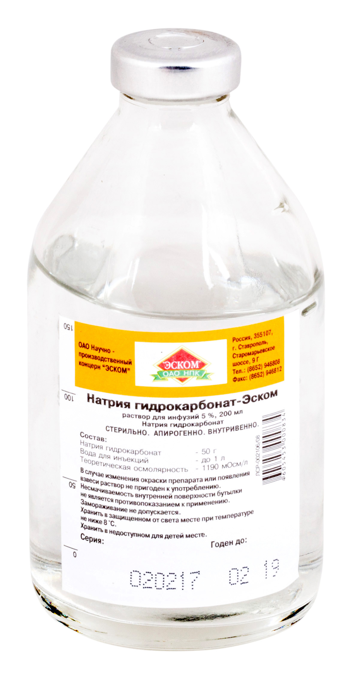 Инструкция по применению Натрия гидрокарбонат-Эском раствор 5% фл 200 мл