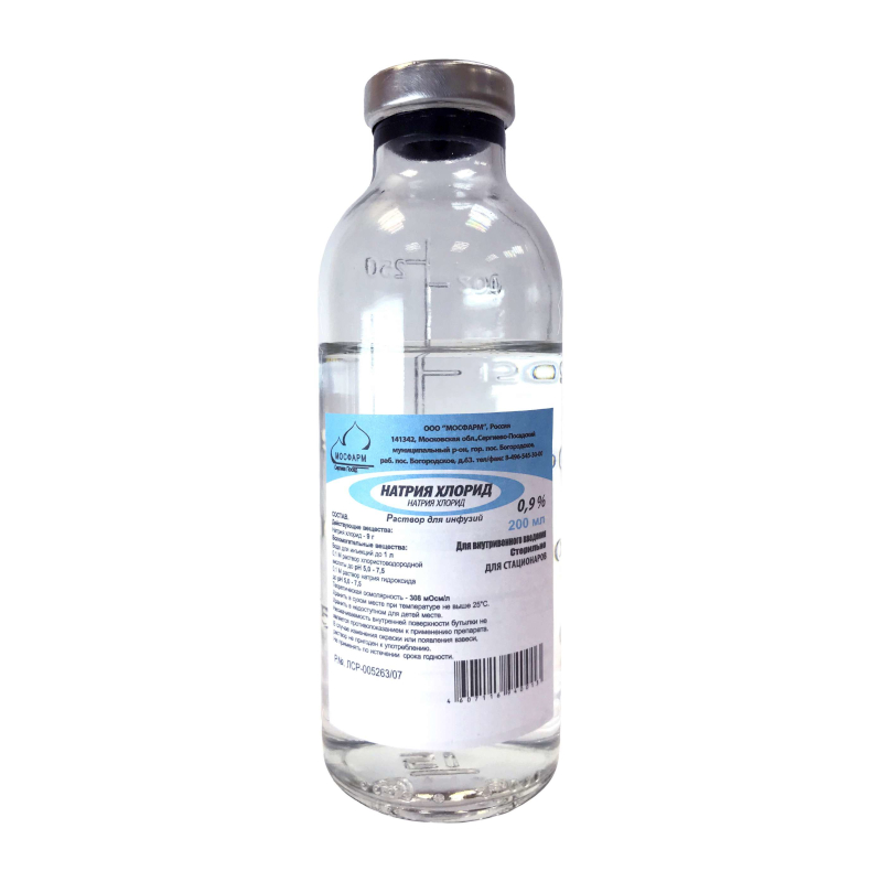 Инструкция по применению Натрия хлорид 0,9% раствор для инфузий 200 мл 28 шт