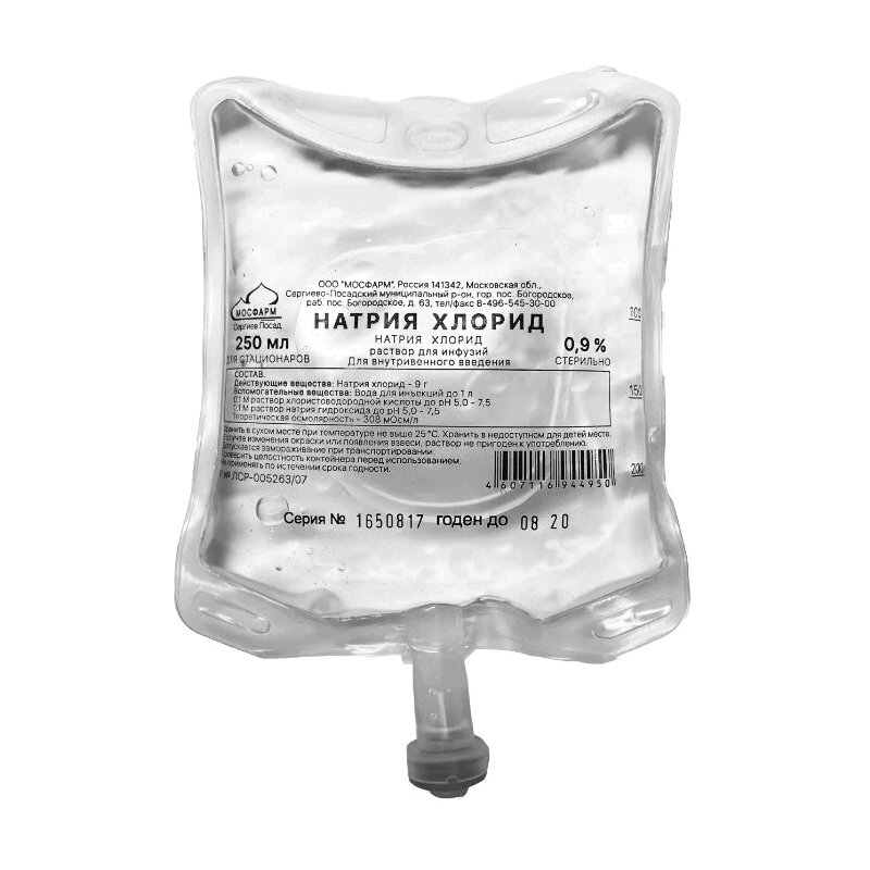 Натрия хлорид раствор для инфузий флакон 0,9% конт.250 мл 1 шт