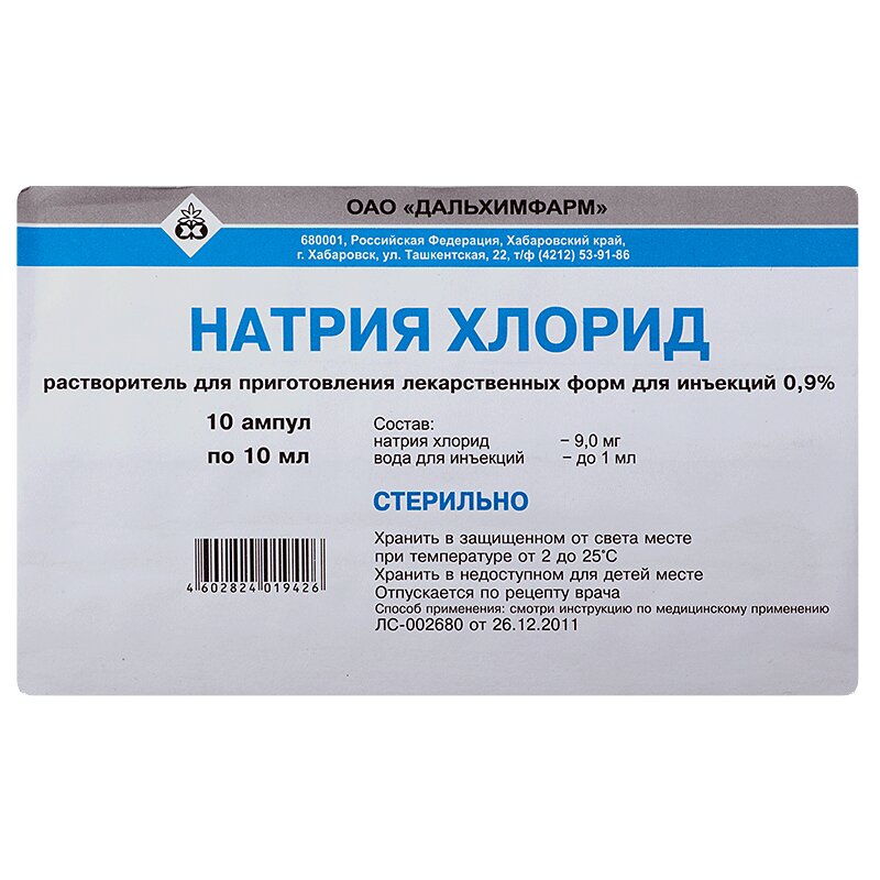 Инструкция по применению Натрия хлорид р-р д/ин.0,9% амп.10 мл 10 шт